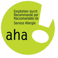 Die mit aha! gekennzeichneten Produkte sind von der unabhängigen Zertifizierungsstelle Service Allergie Suisse (SAS) geprüft und kontrolliert und von aha! Allergiezentrum Schweiz empfohlen. Die Zertifizierungsprozesse basieren auf strengen Richtlinien, welche die Herstellung, die Kennzeichnung und den Vertrieb überwachen.