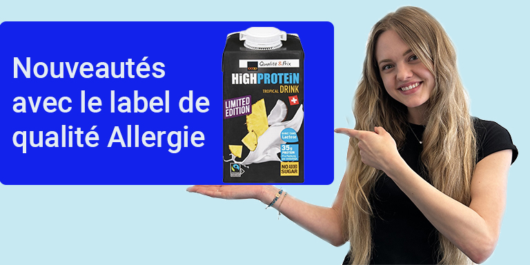 Des produits sans gluten et/ou sans lactose, tels que les yogourts sans sucre, une margarine végane, une mayonnaise végane et diverses boissons à l'avoine, ont récemment obtenu le label de qualité Allergie. De nouveaux produits de soin pour peaux sensibles sont également disponibles pour les bébés et les jeunes enfants. Ces produits sont sans parfum, sans fragrance, sans colorant et ne contiennent aucun des 26 composés allergènes. Jetez un œil aux produits.