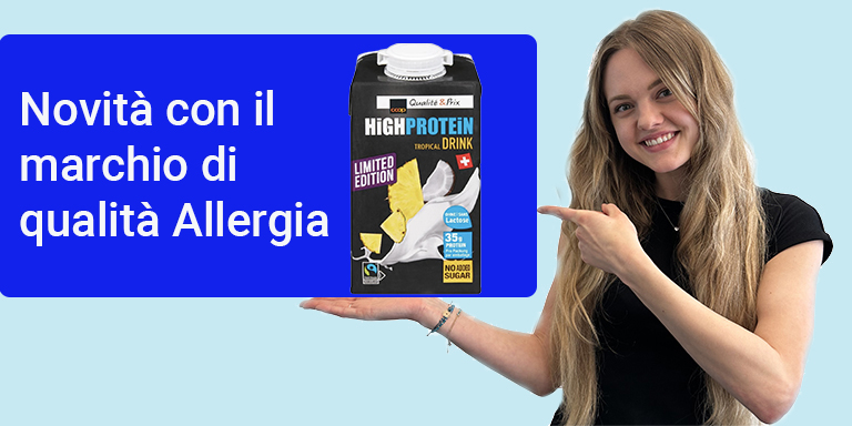 Grazie al marchio di qualità Allergia, le persone con allergie e intolleranze possono riconoscere a colpo d'occhio un prodotto adatto a loro. Il marchio garantisce che il processo di fabbricazione di un prodotto è stato accuratamente controllato e conferma in modo visibile che le indicazioni sulla confezione (ad esempio «senza latte», «senza glutine») sono corrette.  Scoprire i prodotti con il marchio di qualità  oppure guardate il video